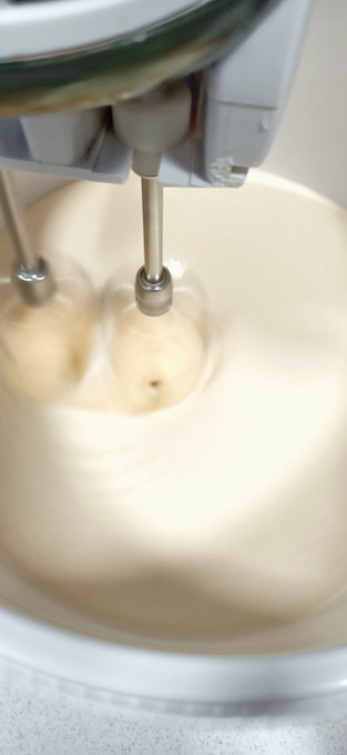 A continuación, añadimos poco a poco la mezcla de las harinas, impulsor y sal, si lo estamos haciendo con batidora con varillas, bajamos la velocidad al mínimo, si no hay posibilidad de bajársela, lo haremos a mano, con movimientos suaves y envolventes.